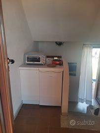 Villetta con terrazze vista mare e tramonto su Capo Testa - giardino privato & posto auto privato Goditi ogni sera uno dei tramonti più belli della Sardegna direttamente dalla tua terrazza. Questa elegante villetta a schiera su più livelli, situata a pochi passi dal mare nella splendida zona di Santa Reparata (Santa Teresa di Gallura), è la soluzione ideale per una coppia che cerca relax, privacy e una vista davvero speciale. La villetta è moderna, indipendente e curata nei dettagli, con una distribuzione degli spazi originale e funzionale: Dal giardino privato, ben curato e perfetto per rilassarsi, si accede al primo piano Qui si trova un piccolo soggiorno con angolo cottura, tavolo allungabile e bagno con doccia Dal soggiorno si scende nella camera matrimoniale, accogliente e riservata, con terrazza indipendente Salendo invece al livello superiore si raggiunge la vera perla della casa: una splendida terrazza abitabile All'esterno: Terrazza panoramica attrezzata, ideale per colazioni e cene all'aperto Barbecue a legna Vista aperta sul mare con tramonto diretto sul mare di Capo Testa, uno spettacolo unico ogni sera Comodità Posto auto privato (fondamentale in zona) Posizione tranquilla A meno di 200 metri dal mare . Market e Ristoranti a pochi minuti a piedi Perché sceglierla Vista mare spettacolare reale Tramonti spettacolari dalla terrazza Spazi esterni vivibili e riservati Ideale per coppie Contesto silenzioso e rilassante Affitto settimane solo 2 due adulti senza animali no fumatori, no organizzare feste