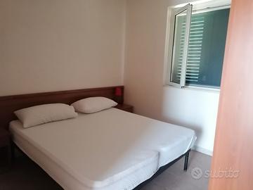 Sul lungomare Enrico Mattei nr 128 a circa 3 km dal centro abitato di Vieste fronte mare affitto villetta a schiera max 4 posti letto con 1 camera matrimoniale e 1 con 2 letti singoli unibili cucina bagno ampia veranda attrezzata con tavolo e sedie il tutto circondato da un ampio giardino parcheggio auto privato cancello con telecomando aria condizionata barbecue animali domestici non ammessi possibilità di spiaggia libera difronte o di lido nelle vicinanze bar alimentari frutta ristorante pizzeria CIN IT071060C200044792