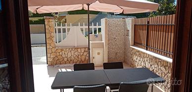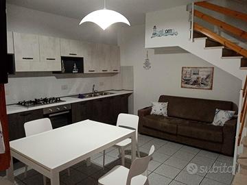 Al piano terra c'è una cucina attrezzata con lavastoviglie, forno,aria condizionata, frigo, TV e divano letto.
