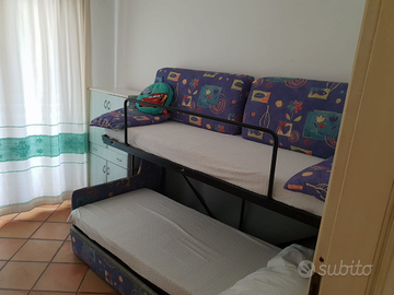 Villetta con grande giardino privato a 200 metri dalla Spiaggia Bianca (facilmente raggiungibile a piedi) - composta di due stanze con 5 posti letto - 1 bagno - salotto - ampia veranda coperta con vista panoramica sul mare e l'isola di Tavolara - completamente ammobiliata - cucina completa di lavatrice e lavastoviglie - aria condizionata - ideale per soggiorno di famiglie anche con animali - piscina ad uso condominiale - posto auto riservato - Prezzi a partire da Euro 200 fino a Euro 600 per notte. Da aggiungere ad ogni soggiorno Euro 80 per pulizie in uscita - Per info disponibilita' e per preventivi telefonare alla sig. ra Gioia cell. 3472505006