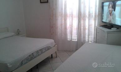 Cin numero IT075043C200050961 Affitto a Torre dell'Orso villetta con due camere da letto, con 5 posti letto comodi, due bagni con box doccia ampio, tinello attrezzato con piano cottura. Il villino è con veranda e posto auto. Il giardino è grande, con tettoia 7 x 4, altalena, doccia esterna con acqua calda, barbecue e sdraio. La casa è completa di condizionatore, lavatrice, ferro con asse da stiro, 2 phon per capelli, frullatore a immersione, microonde, 2 TV, frigo, forno, piatti, stoviglie eccetera. La casa è tenuta in ottime condizioni, c'è tutto l'occorrente per cucinare per 6-8 persone, cuscini e materassi sono nuovi. È Affitto anche appartamento con 8 posti letto. Prezzo da concordare Disponibilità maggio Le prime due di giugno Dal 18 luglio al 25 luglio La prima di agosto ultima agosto in poi