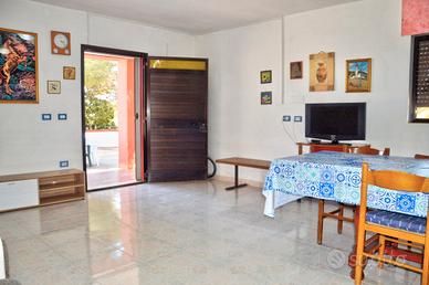 La casa offre spazio per ospitare fino a 6/7 persone, distribuiti in due camere da letto e un ampio soggiorno. È dotata di servizi interni con box doccia, una cucina componibile e un giardino circostante completamente recintato, con patio attrezzato. L'area esterna include un ulteriore bagno completo con doccia, oltre a una terza doccia chiusa accessibile dall'esterno.