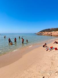 Villetta indipendente a Santa Margherita di Pula in zona residenziale e riservata. 6 posti letto, di cui un matrimoniale e una camera con 4 letti singoli. Due bagni e posto auto. Doccia esterna, giardino. Dotata di tutti i comfort, climatizzazione e Wi-Fi. A 300 m a piedi dalla spiaggia di Cala Marina e 10 min in macchina da Chia e Tuerredda. Disponibile da maggio a settembre.