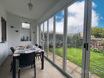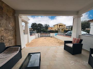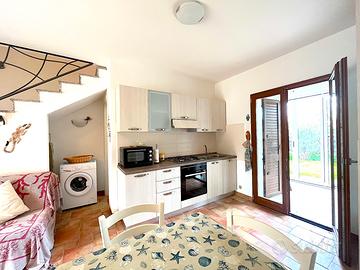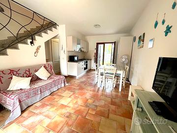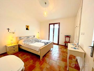 Villetta su due livelli finemente arredata, adatta a famiglie o coppie, a pochi minuti dal centro e dal mare, in un contesto tranquillo e fuori dal caos. Il trilocale è composto al piano terra da un soggiorno spazioso con angolo cottura, divano letto matrimoniale, bagno di servizio, mentre al primo piano c'è un'ampia camera da letto matrimoniale e una camera con 2 letti singoli eventualmente unibili se ci fosse la necessità di avere un altro letto matrimoniale, bagno con box doccia. Entrambe le camere sono climatizzate ed è presente tv e lavatrice. L'esterno è caratterizzato da una veranda frontale attrezzata con divanetti, dove è presente anche una doccia esterna, e un ulteriore spazio sul retro con giardinetto e una veranda chiusa attrezzata per poter cenare in tranquillità.