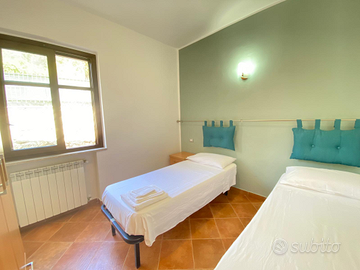 Tre Querce Case Vacanza Fittasi ad uso turistico a partire da Giugno 2026, week min 2 notti (bassa stagione) e salvo disponibilità, estate 2026, in collina contesto tranquillo immersi nella natura a Marina di Camerota; villino al piano terra, ingresso indipendente composto da cucina abitabile, 2 camere da letto, un bagno con doccia, terrazzo esterno, completo di elettrodomestici (frigo, forno, lavatrice e tutti gli utensili e pentolame da cucina, kit pulizia) zanzariere, doccia anche esterna acqua calda, giardino- solarium, 1 posto auto all'interno della struttura. Area Wi- fii e area giochi bambini. L'unità può ospitare Max 5 posti letto. Distanza dalla prima spiaggia rif. Capo Grosso 1km, rif spiaggia Mingardo 1,5 km, dal centro di Marina di Camerota 2,5km circa, per gli spostamenti si necessita l'utilizzo di un proprio veicolo. Il prezzo è inteso a settimana per 4 posti letto, incluso di utenze (elettricità, acqua, gas),pulizia finale; il prezzo cambia a seconda del periodo prescelto e per l'eventuale aggiunta del posto letto. Vari servizi extra a pagamento. Il Fitto per una settimana è da sabato a sabato.