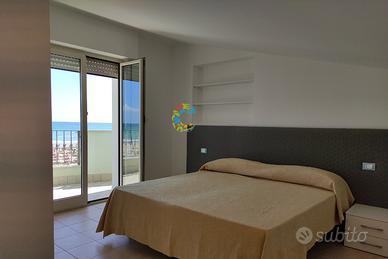 - Terrazzo fronte mare con vista panoramica attrezzato con tavolo e sedie per pranzi all'aperto