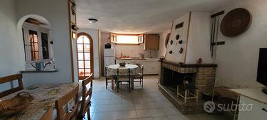 Al piano seminterrato si trova la sala da pranzo con un angolo cottura.