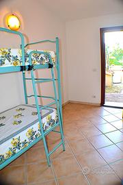 Prossima stagione estiva a San Teodoro: Graziosa villetta immersa nel verde, con ampio giardino angolare, composta da camera da letto matrimoniale, camerata con letto a castello, soggiorno con angolo cottura e divano letto singolo, bagno con box doccia, tv, lavatrice, doccia esterna, posto auto su strada.