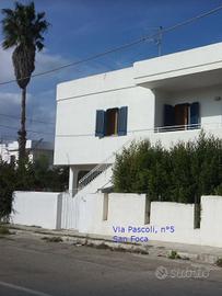 La villetta è su due piani. 2/9 posti letto -CIN: IT075043C200108784 -Wi-Fi TIM -Smart TV. Netflix -Condizionatori in camera da letto -cell. 329 6179046 -su richiesta PRIMA COLAZIONE -su richiesta BIANCHERIA IL PRIMO PIANO è composto da 2 camere da letto, una matrimoniale più letto singolo e un'altra matrimoniale più letto singolo o doppio letto per ragazzi, un bagno completo con doccia ed un piccolo soggiorno con p.c., frigo e lavello; con balcone vista mare. IL PIANO TERRA dispone di una camera da letto e cucina completa di stoviglie con p.c. e forno elettrico, lavastoviglie, macchinetta caffè Nespresso e fornetto microonde; un bagno con doccia; lavatrice, ferro e asse da stiro, phon, culla, seggiolone. UN FUNZIONALE PORTICO , un gradevole ampio giardino con barbecue ed una area per posto per due auto o un camper completano le dotazioni dell' appartamento. I punti di forza della villetta sono: la posizione a circa 250 mt dalla spiaggia, la vista mare, il giardino vivibile, la possibilità di ospitare in due alloggi semi-indipendenti, due posti auto privati o posto camper, la zona residenziale. -SAN FOCA, CINQUE VELE e BANDIERA BLU 2025, è il luogo ideale per trascorrere le vostre vacanze nel Salento . Immerso in una natura incontaminata, dove la mattina presto si può andare nel porticciolo e acquistare il pesce direttamente dai pescatori, famoso anche per i ricci di mare e per il variopinto mercato estivo del martedì. -SAN FOCA, per gli amanti della natura, si trova ad appena 5 km dall'Oasi protetta delle Cesine e i Laghi Alimini, zone protette speciali ricche di flora e fauna . In pochi minuti si raggiungono Roca con la sua bellissima scogliera e la ormai famosissima piscina naturale "LA POESIA", Torre dell'Orso, l'affascinante OTRANTO, ACAYA unico esempio nel Meridione di città fortificata . Oppure dirigendosi verso l'interno visitare città come Lecce, Galatina , Maglie e i paesini della GRECìA SALENTINA. (foto copertina Alfonso Zuccalà ph.)
