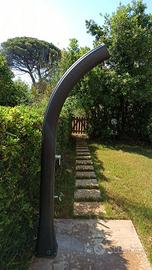 L'abitazione ha ingresso indipendente, 2 portici coperti vivibili (fronte e retro), 2 giardini privati (fronte e retro) interamente recintati e attrezzati con doccia esterna (acqua calda), rastrelliere private per parcheggiare fino a 5 biciclette e lavabo per bucato. Posto auto riservato incluso.