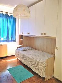 Primo piano: camera matrimoniale con ampio armadio, tv e terrazza (con lettino prendisole), seconda camera doppia con affaccio sul Parco Naturale, bagno con finestra, doccia e spazioso ripostiglio.