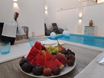 Scopri la tua villetta con pisicna ideale a Lido Marini, a soli 300 metri dalla spiaggia e dal centro, con tutti i servizi a portata di mano. Perfetto per famiglie o gruppi fino a 5 persone, offre comfort moderni in un contesto rilassante e ben servito.Caratteristiche Principali Posizione strategica: Solo 300 metri dalla spiaggia sabbiosa e dal vivace centro di Lido Marini, vicino a negozi, ristoranti e servizi essenziali. Spazi interni: 2 camere da letto accoglienti, 2 bagni completi, soggiorno con angolo pranzo e TV LED per momenti di relax. Comfort esclusivi: Aria condizionata, WiFi, veranda antistante per pranzi all'aperto. Servizi Inclusi Posti letto: 5 (configurazione flessibile per coppie, famiglie o amici).Parcheggio riservato privato per la tua auto. Piscina con ampia zona solarium, ideale per giornate di sole. Perfetto per vacanze nel Salento: prenota ora il tuo soggiorno a Lido Marini e vivi il mare a due passi!
