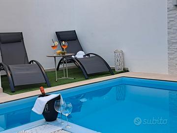 Scopri la tua villetta con pisicna ideale a Lido Marini, a soli 300 metri dalla spiaggia e dal centro, con tutti i servizi a portata di mano. Perfetto per famiglie o gruppi fino a 5 persone, offre comfort moderni in un contesto rilassante e ben servito.Caratteristiche Principali Posizione strategica: Solo 300 metri dalla spiaggia sabbiosa e dal vivace centro di Lido Marini, vicino a negozi, ristoranti e servizi essenziali. Spazi interni: 2 camere da letto accoglienti, 2 bagni completi, soggiorno con angolo pranzo e TV LED per momenti di relax. Comfort esclusivi: Aria condizionata, WiFi, veranda antistante per pranzi all'aperto. Servizi Inclusi Posti letto: 5 (configurazione flessibile per coppie, famiglie o amici).Parcheggio riservato privato per la tua auto. Piscina con ampia zona solarium, ideale per giornate di sole. Perfetto per vacanze nel Salento: prenota ora il tuo soggiorno a Lido Marini e vivi il mare a due passi!