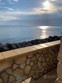 Vista mare ,Terrazzo esterno con doccia tavole sedie ombrellone brace , la casa è dotata di lavatrice aria condizionata,2 tv led , fono ,aspirapolvere , telo mare , lenzuola , la cucina è dotata di forno , piatti posate pentole , zanzariere su tutte le finestre , ombrellone sedie X il mare , la discesa a mare dista dalla casa dieci passi ,spiaggia libera ,e sulla destra o sinistra ci sono lidi privati,