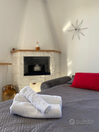 Villetta indipendente con camera matrimoniale (culla su richiesta), bagno con box doccia, soggiorno con cucina a induzione e divano letto con altri 2 posti. Arredi completamente nuovi, Smart TV, lavatrice, Aria Condizionata, Barbecue. Ampio spazio esterno privato con veranda e parcheggio recintato.