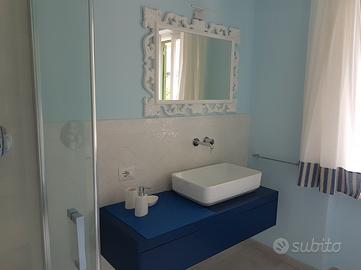 VILLETTA DI FAMIGLIA INDIPENDENTE : 2 TRILOCALI NUOVISSIMI- CLIMA- BALCONE VISTA MARE - WI-FI - POSTO AUTO RISERVATO - 2 CAMERE - 4 PERSONE- SCONTI BIGLIETTO NAVE - La particolarità di questo alloggio è lo stupendo panorama che offre: vista mare e monti. Location ideale per coloro che vogliono rilassarsi in un ambiente a contatto con la natura e a pochi passi dal mare e dalla spiaggia. L'appartamento GRAZIELLA si trova al piano terra rialzato della villetta. Dispone di aria condizionata/ pompe di calore in ogni ambiente. Può ospitare 4 persone ( ed è composto da 2 camere da letto ( una con un letto matrimoniale e una con due lettini, che possono diventare un altro letto matrimoniale), un ampio bagno con box doccia, uno spazioso soggiorno con angolo cottura e un divano. La zona living dispone di un ampio balcone sul quale è possibile mangiare e di un cortile attrezzato. L'appartamento CATERINA si trova al primo piano. Dispone di aria condizionata in ogni ambiente. Può ospitare 4 persone ed è composto da 2 camere da letto ( una con un letto matrimoniale e una con due lettini), un ampio bagno con box doccia, uno spazioso soggiorno con angolo cottura. La zona living dispone di un ampio balcone vista mare sul quale è possibile mangiare e di un altro balconcino in camera. Entrambi gli appartamenti sono freschissimi perché hanno ampie finestre e porte finestre su tutti i lati della casa. Sono dotati di smart TV , wi-fi, aria condizionata, lavatrice e posto auto riservato. L' arredamento è ben curato e nuovo. Se viaggiate con amici potete affittare tutta la villetta. Per informazioni, foto e risposte veloci non esitate a chiamare. Anche su Whatsapp 338 9713480 Nel caso di mancata risposta si prega di lasciare un messaggio. Indicare sempre il numero delle persone e il periodo preciso.