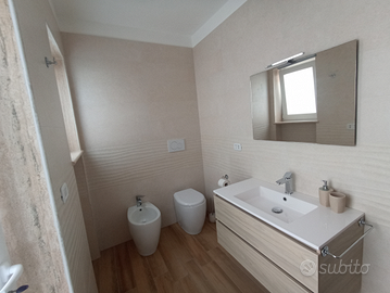 La villa é composta da tre camere con letto matrimoniale e lettino singolo, due bagni, un angolo cottura con cucina , un portico verandato in cui si possono fare cene in compagnia e un ampio giardino con posto auto.