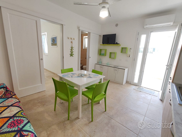 Confortevole e grazioso TRILOCALE di proprietà privata, piano terra rialzato, incluso parcheggio privato e numerato a soli 50 metri dal mare, con spiaggia dotata di tutti i confort, libera e lidi attrezzati raggiungibili attraversando una fresca pineta di eucalipto di pertinenza della Rotonda Serena.