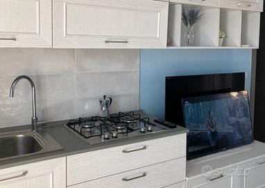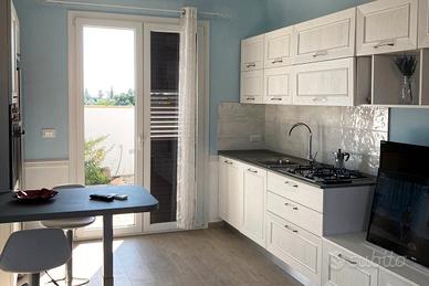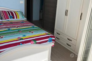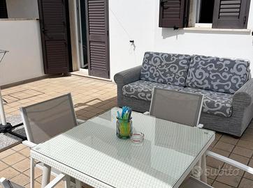 Caratteristiche dell'Alloggio:- Spazio esterno: la villetta dispone di un patio attrezzato con tavolo, sedie e barbecue, perfetto per pranzi e cene all'aperto. Nello spazio esterno antistante, inoltre, è possibile usufruire del posto auto privato.- Composizione interna: soggiorno in ingresso con cucina attrezzata; due camere da letto; un bagno confortevole. Molto gradevole il soggiorno: luminoso e con cucina completa di elettrodomestici, stoviglie e tutto il necessario per cucinare in autonomia.- Vista mare in lontananza: dalla villetta è possibile scorgere una piacevole vista sul mare, renden continua a leggere...