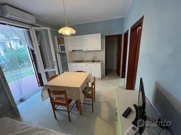 Lido degli Estensi, in affitto a solo uso turistico, NO AFFITTO ANNUALE, villetta al piano terra con giardino privato, 5/6 posti letto, composta da soggiorno con angolo cottura e divano letto, due camere letto, bagno finestrato con box doccia.