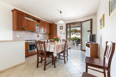 La casa si compone di 2 camere da letto, una matrimoniale e una con due letti singoli, sala da pranzo con divano letto e cucina, 2 bagni (uno con doccia, lavatrice e sanitari; l'altro con WC, bidet e lavabo), ampi spazi esterni con posto auto privato. La terrazza vista mare è dotata da una copertura che fa da zona ombra per godersi pranzi e cene in tranquillità.