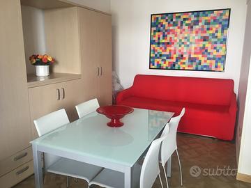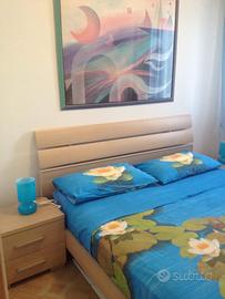 È dotata di tutti i servizi. La casa è composta da bagno con doccia, stanzetta con letto a castello, camera da letto, salotto pranzo con divano letto matrimoniale, cucinino con angolo cottura, ampio terrazzino arredato e tenda da sole elettrica.