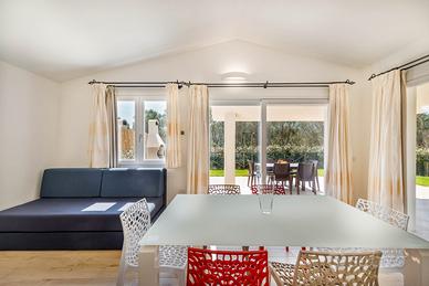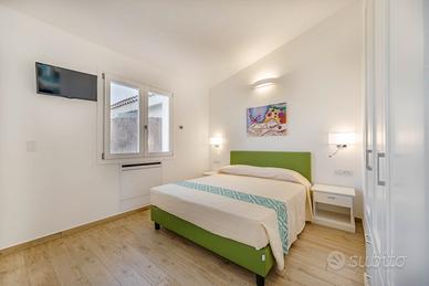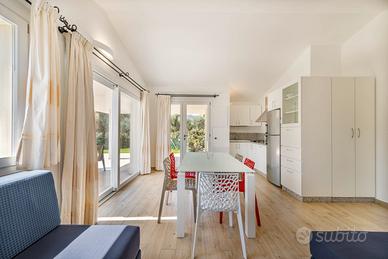 Trilocale composto da 2 camere da letto, zona giorno con angolo cottura e divano letto. Bagno con doccia. Terrazza e giardino