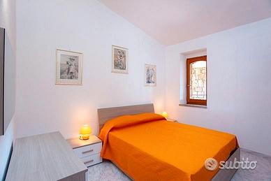 Splendida casa vacanza, con ampia area esterna dotata di barbecue, giardino e posto auto interno. L'immobile si trova in via Lu Mattoni a Lu Fraili e si compone di una cucina, zona giorno, camera da letto matrimoniale e camera con due letti singoli, volendo unibili, bagno con doccia. Zona esterna arredata con tavolo e sedie, mentre la veranda sul retro è arredata con un piccolo salottino, dove potersi tranquillamente rilassare, lontano dalla movida del centro. La spiaggia di Lu Impostu dista appena 2000 metri.