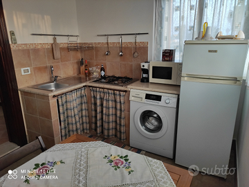 L'angolo cottura è dotato di cucina a 4 fuochi, frigorifero con freezer, pentole, stoviglie, suppellettili varie. Tv , aria condizionata, lavatrice.