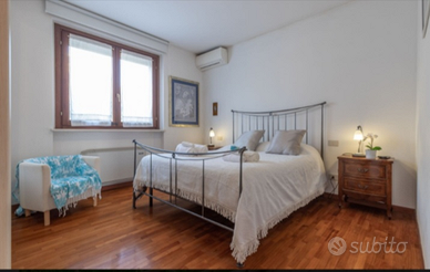 Villetta bifamiliare nella Riviera del Conero, sulla collina a meno di 2 km dalla spiaggia di Porto Recanati, con posto auto coperto, giardino con barbecue, area sgambatoio cane, ampia terrazza prendisole, balconcino panoramico, doppio bagno (uno con vasca ed uno con doccia), aria condizionata, wifi free, rifiniture di pregio, camera matrimoniale con possibilità di aggiunta lettino da campeggio 0-3 anni, cameretta con due letti singoli e divano letto ad una piazza e mezzo in soggiorno. Prezzo a notte, soggiorno minimo: 7 notti (arrivo e partenza di sabato).