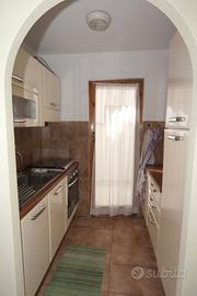 Finemente arredato e recentemente ristrutturato, costituito da ampio spazio esterno arredato con mobilio da giardino, saloncino con divano letto, cucinotto, camera matrimoniale, cameretta, bagno. Totale 4 posti letto