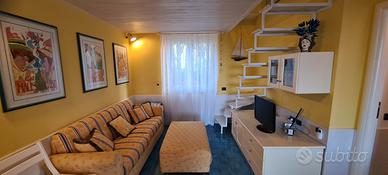 All'interno è dotato di ogni optional, vi è un portico arredato, un solarium ed un giardino con barbecue e doccia esterna. Inoltre vi è un box privato chiuso per la vostra auto, dove si trova anche la lavanderia con lavatrice e asciugatrice. All'entrata troverete il soggiorno con angolo cottura completo di tutti gli elettrodomestici, macchina del caffè, tostapane, frullatore mini pimer, bollitore elettrico, forno ventilato, micronde, fornetto, lavastoviglie, wifi. Dal soggiorno vi sono le scale verso il piano superiore che è composto da una camera matrimoniale mansardata (da un massimo di 2 mt di altezza ad un minimo di 1.20 h) con climatizzatore e porte finestre con accesso al solarium con sdraio e ombrellone, cui si sale anche da una scala esterna. Sempre dal soggiorno vi è un disimpegno che dà sul bagno-doccia e la camera da letto matrimoniale al piano terra. L'eventuale quinto ospite dorme nel divano letto matrimoniale in soggiorno. Vi sono armadi nelle due camere da letto e climatizzatori in tutti gli ambienti. Potrete trovare anche un efficiente barbecue in muratura con lavandino esterno. Doccia esterna. Il residence dispone di un parcheggio ospiti. E' gradita la regola di non sostare nel vialetto all'entrata di casa con l'auto oltre il necessario carico-scarico. Si ha a disposizione il parcheggio fuori dal residence ( a 5 mt da casa) oppure nel box privato. Si accettano cani.