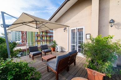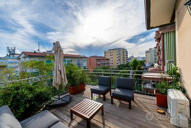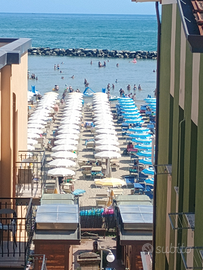"VINTAGE N.4" Esclusivo attico. Lungomare Gatteo Mare Viale Giulio Cesare (lato spiaggia). Climatizzatori e zanzariere. Terzo piano. CIN:IT040016C2EDU85Q63 Periodi Disponibili: MAGGIO: Mensile GIUGNO: 1-15/16-30 LUGLIO: 1-16/17-31 AGOSTO: 1-16/17-31 SETTEMBRE:Mensile o 1-15/16-30 Attenzione: Posto auto gratuito sotto casa DESCRIZIONE: In evidenza: Terrazze arredate. Vista lungomare e vista mare. Il "VINTAGE N.4" offre: Posizione privilegiata: Appartamento fronte spiaggia, in una posizione unica, l'appartamento offre una vista mozzafiato sul mare, regalando momenti di relax e tranquillità. Ampio spazio e privacy: Questo appartamento sul mare offre un'area abitabile generosa, permettendo agli ospiti di godere di ampi spazi sia all'interno che all'esterno. Le due terrazze offrono la possibilità di rilassarsi e godere della vista senza compromettere la privacy, consentendo agli ospiti di vivere momenti di tranquillità e relax in totale riservatezza. Terrazze panoramiche: Due ampie terrazze arredate e spaziose, una con vista mare nella qual puoi fare colazione godendo della vista del mar e l'altra sul lungomare. L'appartamento beneficia di una piacevole brezza marina che rinfresca l'ambiente e crea un'atmosfera fresca e rigenerante. È l'ideale per rilassarsi e godere della sensazione unica di essere accarezzati dalla dolce brezza marina. Dalla terrazza sul lungomare, si può ammirare una vista panoramica mozzafiato che si estende per tutto il lungomare. Durante la sera, le luci notturne si accendono, creando un'atmosfera romantica e suggestiva, perfetta per un aperitivo e per una cena all'aperto.
