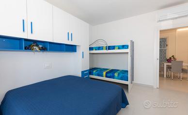 Affitto mese intero, no settimana, appartamento nuovo al quarto piano con ascensori, ingresso, cucina, bagno con box doccia, camera con letto matrimoniale e letto a castello, cameretta con letto matrimoniale,due terrazzi di cui uno vista mare.
