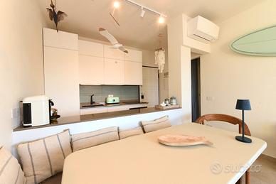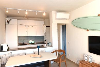 In Sardegna a Palau, di fronte all'arcipelago della Maddalena, in via Riva dei Lestrigoni, 12 in zona tranquilla a 5 minuti a piedi dal centro paese, affitto bilocale completamente ristrutturato a giugno 2024 al primo piano senza ascensore. L'appartamento si affaccia sul porto turistico, senza alcuna casa o edificio che possa ostruire la vista. Appartamento composto da camera matrimoniale ampia con aria condizionata, smart tv e uscita su balcone. Soggiorno con aria condizionata, smart tv, divano letto matrimoniale (160 x 190 x 17), cucina a vista con lavastoviglie, piano induzione, cappa, frigorifero con congelatore e forno microonde combinato, tostapane, bollitore, macchina per il caffè Vertuo Nespresso (per preparare caffè espressi o lunghi). Antibagno con colonna lavatrice e asciugatrice e boiler elettrico per la produzione dell'acqua calda. 1 servizio cieco con aspiratore elettrico, doccia con miscelatore termostatico, piatto doccia a filo pavimento, phon. L'appartamento è dotato di tutti gli elettrodomestici, compreso aspirapolvere e robot (roomba) per la pulizia dei pavimenti (funzione aspirapolvere, non lavaggio). Connessione internet illimitata (attualmente non è ancora disponibile la fibra). Stampante laser Wifi se mai si dovesse lavorare da remoto e quindi dover stampare qualche documento. Possibilità di noleggiare la biancheria. Dal soggiorno e dalla camera si accede ad un unico ampio balcone con vista sul porto turistico di Palau e sull'arcipelago della Maddalena. Sul balcone sono presenti 4 sedie da esterno e un tavolino (80×80) per poter fare colazione o cenare sul balcone (stringendosi un po'). Un posto auto scoperto riservato. Panorama stupendo, a 70 metri dal porto e 150 dalla spiaggia. Palau è un centro turistico grazioso, porto dal quale si traghetta per l'arcipelago della Maddalena. Settembre euro 2800. Chiamare per altri periodi. Solo affitti turistici.