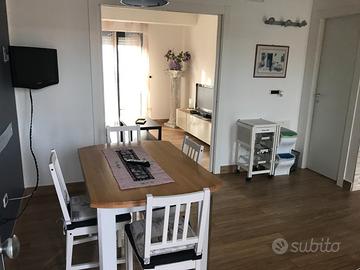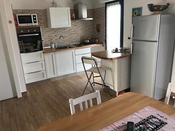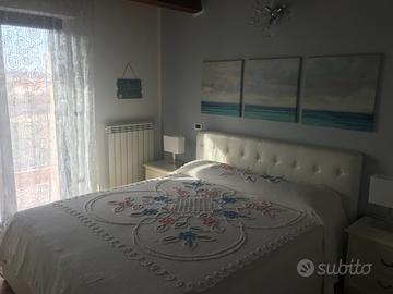 Grazioso appartamento completamente arredato sito al terzo piano senza ascensore con 4 posti letto. Composto da Camera da letto con letto matrimoniale e armadio a 6 ante, salottino con divano letto matrimoniale e TV, entrata living con tavolo, cucina dotata anche di TV e bagno con doccia. Tutte le camere sono dotate di climatizzatore e Zanzariere. Doppia esposizione da cui si può godere una bella vista e vedere il mare. Servizi: 2 TV, Climatizzatore in tutte le camere, forno e frigo congelatore, lavatrice.