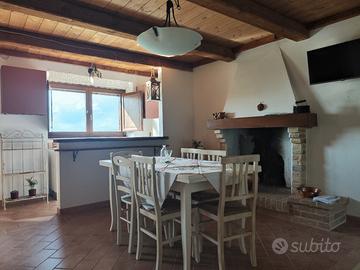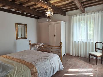 L'agriturismo GrazieSole è un casolare originario degli anni 900, appena ristrutturato in stile rustico e caratteristico con pareti in pietra originale, mattoni in vista e soffitti con travi in legno, dispone di una piscina di 12 metri, con un ampio panorama che si estende dai Monti Sibillini fino al mare. Il casolare è ideale per gruppi, possiamo ospitare fino a 16 persone. E' situato a Penna San Giovanni (provincia di Macerata) in campagna ad un chilometro dal paese in posizione assolata e tranquilla, piscina con vista mozzafiato, circondato da giardino e da ampi spazi verdi con alberi da frutto. La struttura si sviluppa su due piani, è composta da ampio salone-soggiorno con camino, 7 camere, 4 bagni e terrazzo panoramico. C'è la possibilità di prenotare l'intero casale o due alloggi separati con ingressi autonomi: uno, l'alloggio Mattone, con due camere e due bagni interni alle camere per massimo 5 persone, ed un altro, l'alloggio Pietra, con cinque camere, due bagni per un massimo di 11 persone. Gli ospiti potranno disporre dell'intera casa e tutto lo spazio intorno e l'uso della piscina saranno esclusivamente a loro disposizione. A 40 minuti d'auto sono raggiungibili le spiagge sabbiose di Porto San Giorgio e Civitanova Marche, a 20 minuti il Parco Nazionale dei Monti Sibillini. Sono facilmente raggiungibili anche molti paesi dell'entroterra maceratese e fermano, come Sarnano, Urbisaglia, Monte S. Martino, Falerone, Servigliano, San Ginesio, tutti ricchi di arte e storia. Agli amanti della tavola proponiamo ristoranti, agriturismo, cantine, produttori della zona dove l'enogastronomia è assolutamente genuina e di qualità. Durante tutto l'anno potete assaggiare i prodotti tipici nelle sagre organizzate nel circondario, una vera e propria avventura attraverso il gusto e la memoria. Nella casa è incluso un parcheggio privato e linea WiFi del tutto gratuiti.