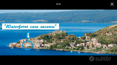 Casa vacanze a Trevignano Romano, in centro paese con 6 posti letto distribuiti in tre stanze, AFFACCIO MOZZAFIATO SUL LAGO, posto auto, aria condizionata , riscaldamento autonomo, Wi-Fi., cucina abitabile con tavolo da 6, bagno con doccia. Super accessoriata ( lavatrice, lavastoviglie, microonde,) luminosissima e ventilata con doppia esposizione e doppio balcone.