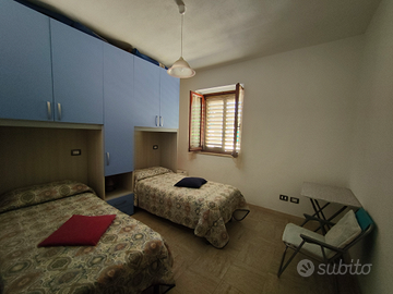 Affittasi per vacanze estive trilocale ristrutturato sito al piano terra di una villa con giardino a circa 600m dalla spiaggia principale di Budoni e a 15 minuti a piedi dal centro del paese. La casa si trova in una posizione tranquilla e silenziosa ma molto comoda per tutti gli spostamenti. Si compone di: una funzionale zona giorno con cucina a vista colore noce, tavolo 6 posti in legno massello, divano e tv sat; una camera da letto matrimoniale con doppi armadi; una camera da letto doppia con armadio a ponte; un bagno finestrato con box doccia e lavatrice; una comoda veranda coperta arredata per mangiare all'aperto e uno spazioso giardino riservato con posto auto privato. È condizionata, c'è il wifi gratuito, una doccia esterna chiusa con acqua calda, un piccolo barbecue, uno stendibiancheria, un microonde e tutta l'utensileria da cucina. L'appartamento è adatto ad un massimo di 4 persone. La casa si affitta nei mesi estivi (maggio/ottobre). Per maggiori informazioni su tariffe e disponibilità potete contattarmi alla mail oppure al tel. 3312294821, anche via whatsapp.