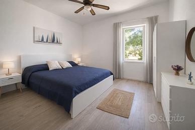 Gli interni includono un soggiorno climatizzato con vista sul golfo, tavolo da pranzo e due divani (di cui uno divano letto), una cucina attrezzata con utensili, frigorifero e macchina del caffè, due camere matrimoniali climatizzate e un bagno completo con doccia e bidet. È inoltre disponibile una lavatrice all'interno della proprietà.