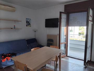 a 250 m dal mare, affittiamo appartamento bilocale composto da soggiorno con angolo cottura, divano letto matrimoniale e singolo, una camera con letto matrimoniale, terrazza e bagno con box doccia. Dotato di televisione, aria condizionata, lavatrice, posto auto e posto spiaggia. Periodo disponibile: dal 01 maggio al 20/06/2026
