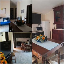 L'appartamento in affitto è al piano primo è composto da un soggiorno con angolo cottura, due bagni, tre camere da letto, di cui due con letto matrimoniale ( una anche con letto a castello)e una con due letti singoli,( 8 posti letto). Volendo il soggiorno ha un divano letto.