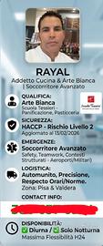 Cerco lavoro in mense e ristorazione collettiva. Qualifica professionale in Arte Bianca (Scuola Tessieri) con competenze in panificazione e pasticceria. In possesso di Attestato HACCP - rischio livello 2 aggiornato al 13/02/2026. Competenze operative: o supporto cucina e preparazione pasti o porzionamento e distribuzione o pulizia e riordino ambienti secondo standard igienico-sanitari Sono inoltre Soccorritore di Livello Avanzato, abituato a lavorare con disciplina, rispetto delle procedure e gestione dello stress. Persona puntuale, organizzata e con forte senso di responsabilità. Automunito - disponibile da subito per lavoro in mense aziendali, scolastiche, militari o aeroportuali nella zona Pisa e Valdera. Disponibile per colloquio o prova pratica.