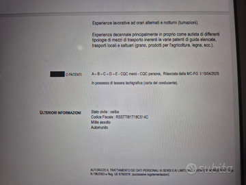 Esperienze passate autobus e motrice. Disponibile a trasferte nazionali anche di lunghi periodi