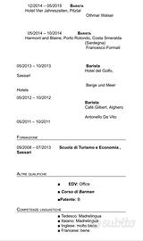 Negli ultimi anni ho lavorato in un hotel 5 stelle in Austria, ricoprendo i ruoli di barista e chef de rang. Questa esperienza mi ha permesso di sviluppare competenze professionali nel servizio, nella gestione dei clienti e nella preparazione di bevande, sempre in un contesto di alto livello.