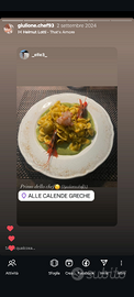 Sono Giulio ho 32 anni, ormai da 7/8 anni nel settore, mi reputo una persona seria e professionale, nel corso della mia carriera ho ricoperto tutte le partite e ho anche avuto delle esperienze come chef nella gestione della cucina a Verucchio in provincia di Rimini, a cattolica, e in altri due ristoranti nel Salento, sono stato appassionato di cucina da quando ero piccolo, e crescendo ho iniziato a vedere per qualche corso di cucina e sono finito a fare l alberghiero, conseguendo il diploma con voti eccellenti, ma quello che mi ha insegnato di più senza dubbio è stato il lavoro effettivo sul campo, per maggiori informazioni potete contattarmi al numero 3294391551