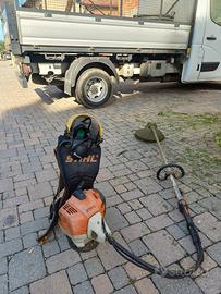 Munito di patentino per trattore e di attrezzature professionali per giardinaggio, potatura e lavori forestali.