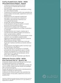 Mi occupo di progettazione grafica e realizzazione di contenuti visivi, sia per il web che per altri canali di comunicazione. Nel tempo libero lavoro anche come videomaker, creo contenuti per i social media e mi dedico alla fotografia, così da offrire soluzioni complete e creative.