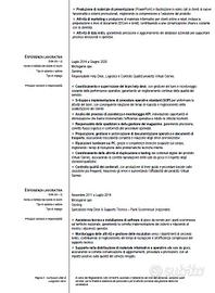 Mi chiamo Vanni Lucignano e sono diplomato Geometra con il massimo dei voti. Ho maturato una solida esperienza in contesti dinamici, ricoprendo ruoli di coordinamento HD/Customer, gestione clienti e supporto operativo, con responsabilità di team management, ottimizzazione processi e miglioramento delle performance. Ho consolidato competenze in front e back office, gestione dati e ticketing tramite sistemi dedicati (CRM, GLPI), redazione di documentazione operativa e reportistica, con utilizzo avanzato di strumenti Office, in particolare Excel, e software gestionali come AS400. Ho inoltre esperienza operativa in magazzino e logistica, con utilizzo di muletto frontale e laterale e terminali portatili (palmari) per gestione flussi merci, inventari e documentazione, garantendo precisione e continuità dei processi. Le mie competenze trasversali includono problem solving, gestione delle priorità, coordinamento di attività complesse e capacità di analisi dei dati, che mi permettono di intervenire efficacemente su criticità, proporre soluzioni sostenibili e supportare decisioni strategiche. Grazie a queste capacità, ho contribuito a migliorare l'efficienza dei processi interni, ottimizzare i flussi operativi e incrementare la qualità del servizio al cliente. Attualmente sto completando un corso per impiegato amministrativo contabile, attraverso il quale sto acquisendo ulteriori competenze in contabilità ordinaria, gestione paghe e contributi con il gestionale Zucchetti, consolidando ulteriormente il mio profilo e ampliando la mia capacità di contribuire in modo strategico ai processi aziendali. Sono una persona proattiva, affidabile e orientata al risultato, con forte attenzione ai dettagli e capacità di lavorare in team, pronta a mettere a disposizione la mia esperienza e le mie competenze per contribuire in modo concreto al successo dell'organizzazione. Resto a disposizione per un colloquio conoscitivo e porgo cordiali saluti. Vanni Lucignano