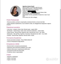 Agostina: cameriera di sala e barista , anche in Argentina come cameriera e venditrice di abbigliamento